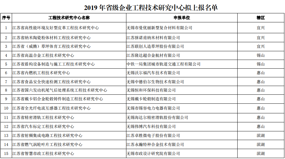 根據(jù)《關(guān)于做好2019年省級企業(yè)工程技術(shù)研究中心及省級企業(yè)院士工作站建設(shè)工作的通知》(蘇科研函〔2019〕264號)和《關(guān)于下放省級工程技術(shù)研究中心和省級企業(yè)人才站點管理權(quán)限的通知》(蘇科條發(fā)〔2015〕136號)的要求,受省科技廳委托,科技局對申報2019年省級企業(yè)工程技術(shù)研究中心的項目進(jìn)行了評審。現(xiàn)將擬上報結(jié)果進(jìn)行公示,公示時間5個工作日(自2019年8月26日至8月30日)。 任何單位和個人如對公示項目有異議,可在公示期內(nèi)以書面形式提出,并列舉異議理由和相關(guān)證明材料。以單位名義提出的,需加蓋單位公章;以個人名義提出的,需寫明自己的真實姓名、單位、職務(wù)職稱、聯(lián)系地址及電話等。 監(jiān)督電話:81821912 咨詢電話:81821907?![]()